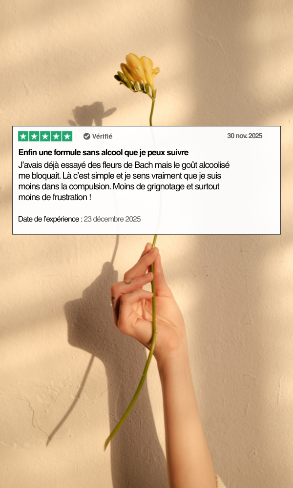 Traditionnellement utilisée pour l’impatience et l’irritabilité. Elle accompagne les réactions impulsives qui mènent aux craquages rapides, envies soudaines et grignotage automatique.
